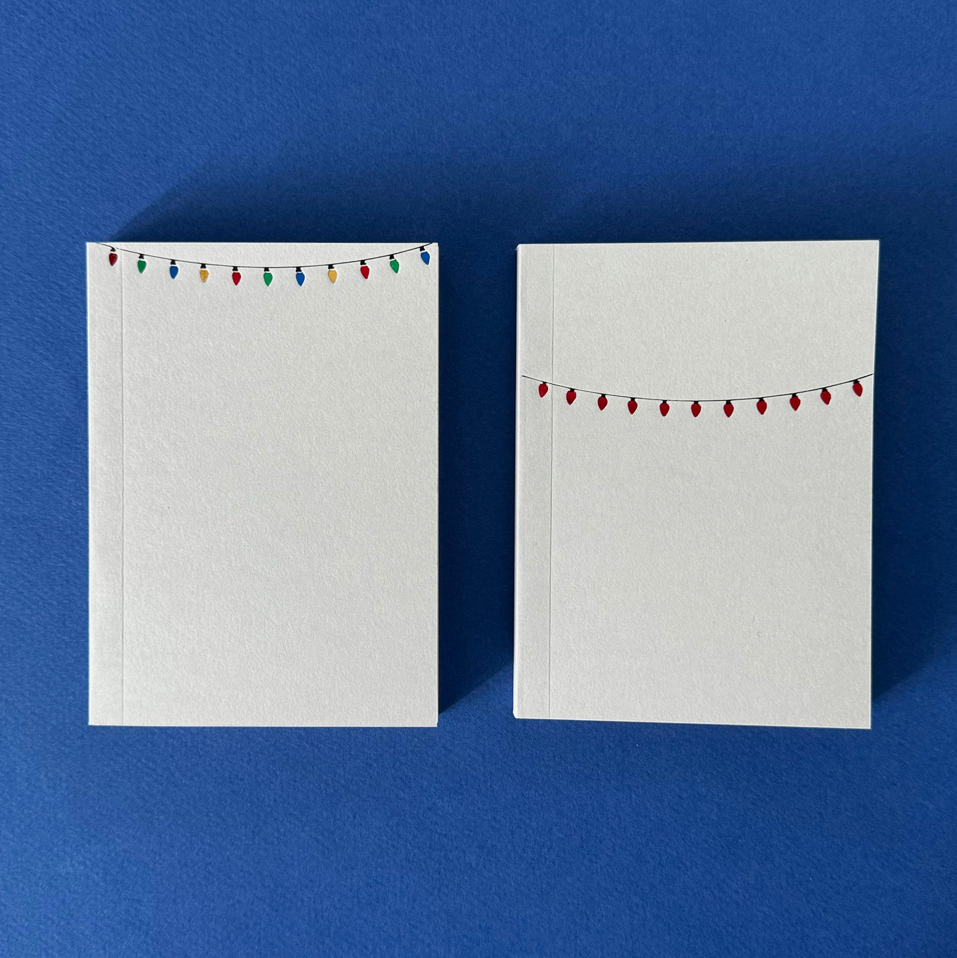 Setteki defterlerden birinin kapağına renkli, diğerinin kapağına ise kırmızı yılbaşı ışıkları motifi sıcak folyo baskı tekniği ile uygulandı.