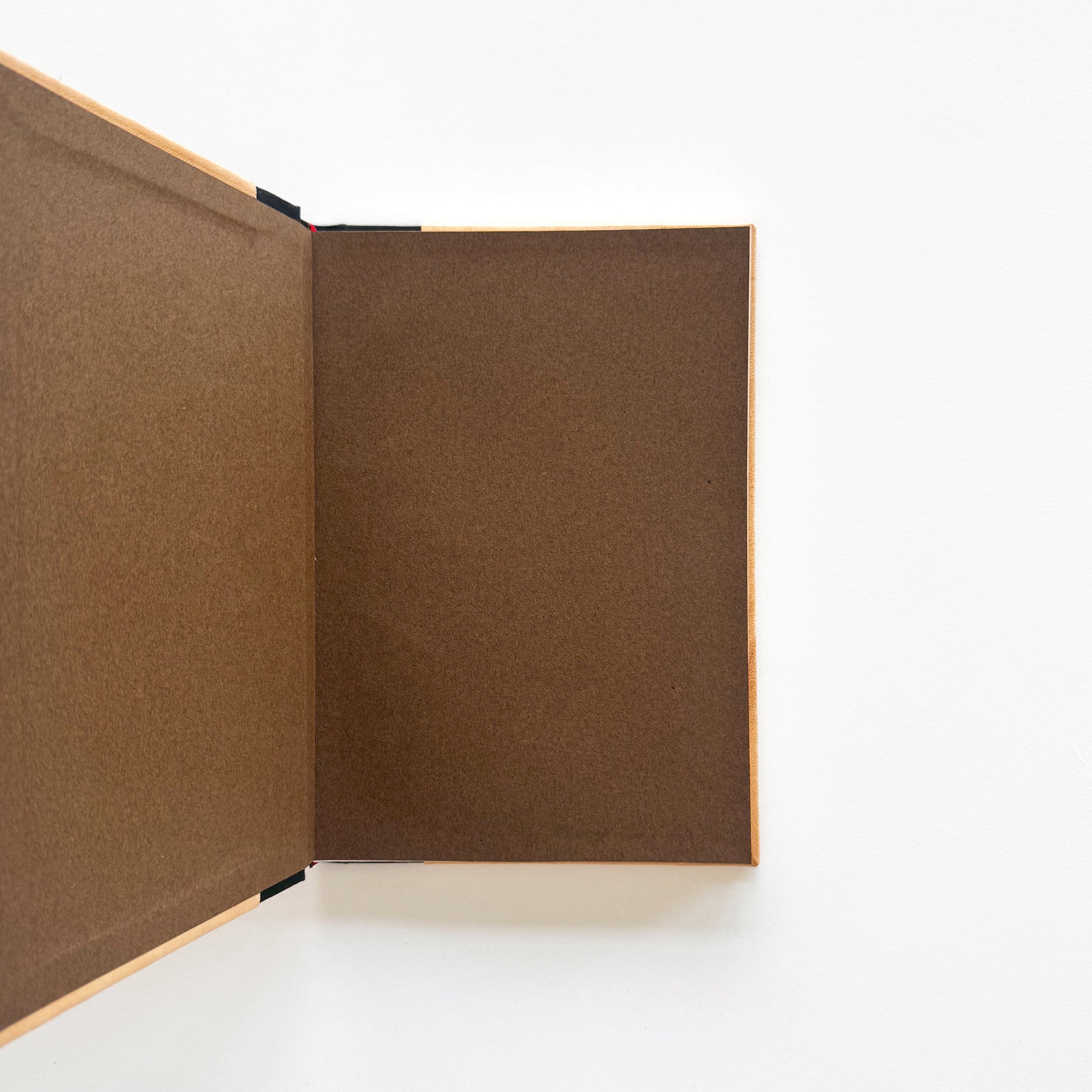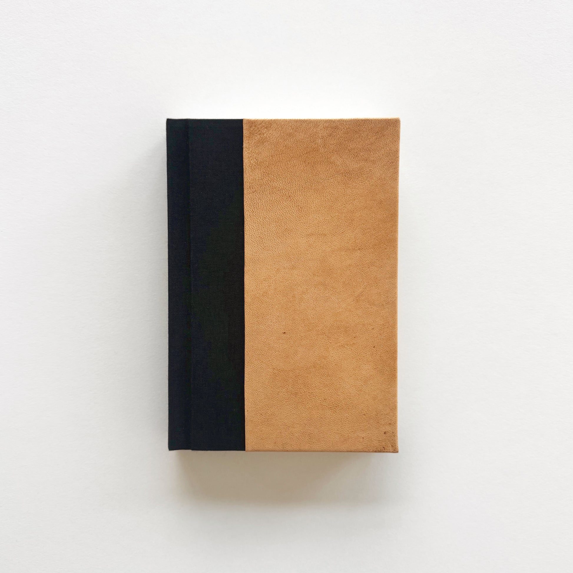 Sarı, mat, hakiki deri ve siyah, keten cilt bezi ile ciltlendi.