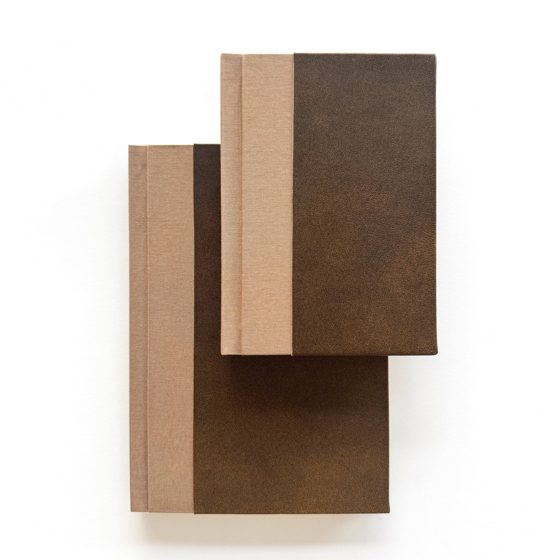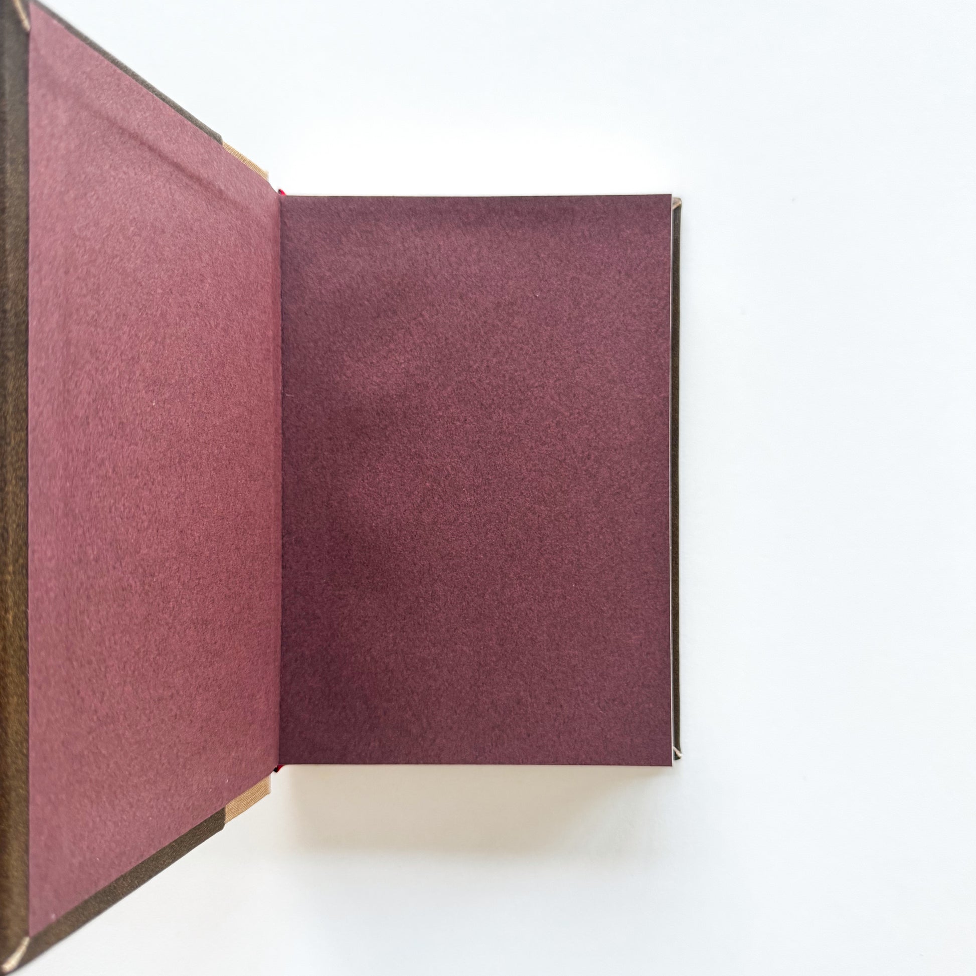 Kahverengi, mat, hakiki deri ve bej, keten cilt bezi ile ciltlendi.