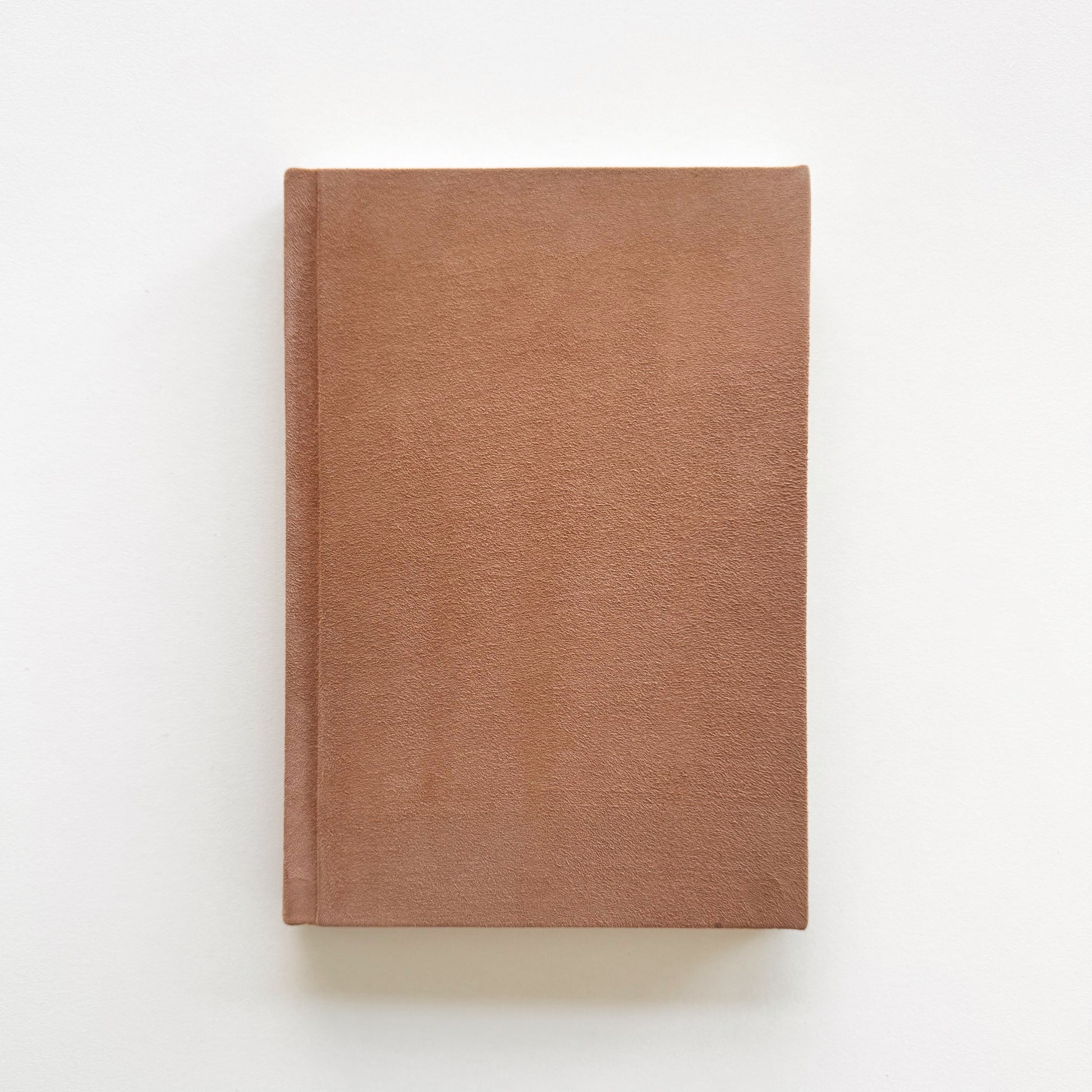 Somon rengi, hakiki, süet deri ile ciltlendi.