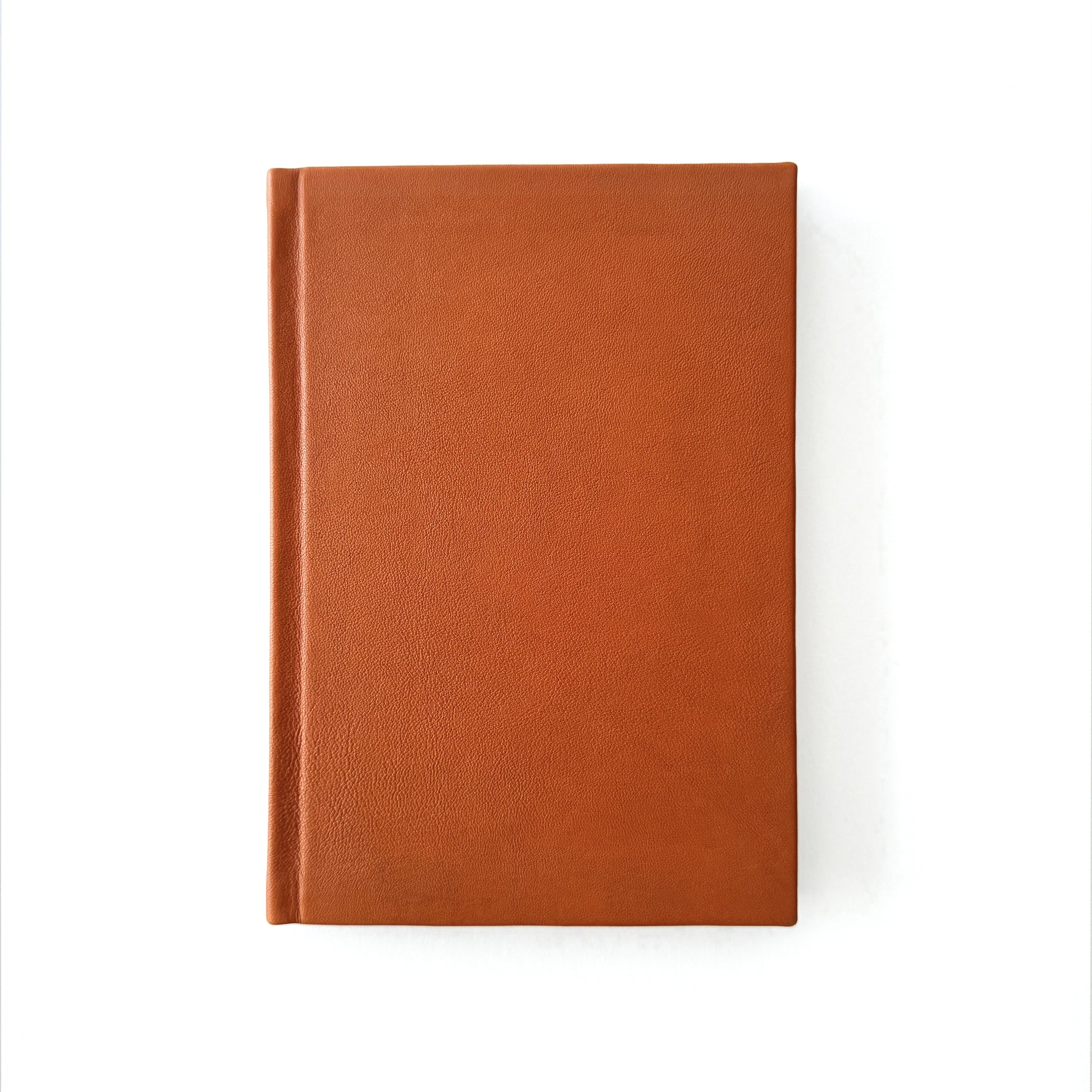 Turuncu renkli, hakiki deri ile ciltlendi.