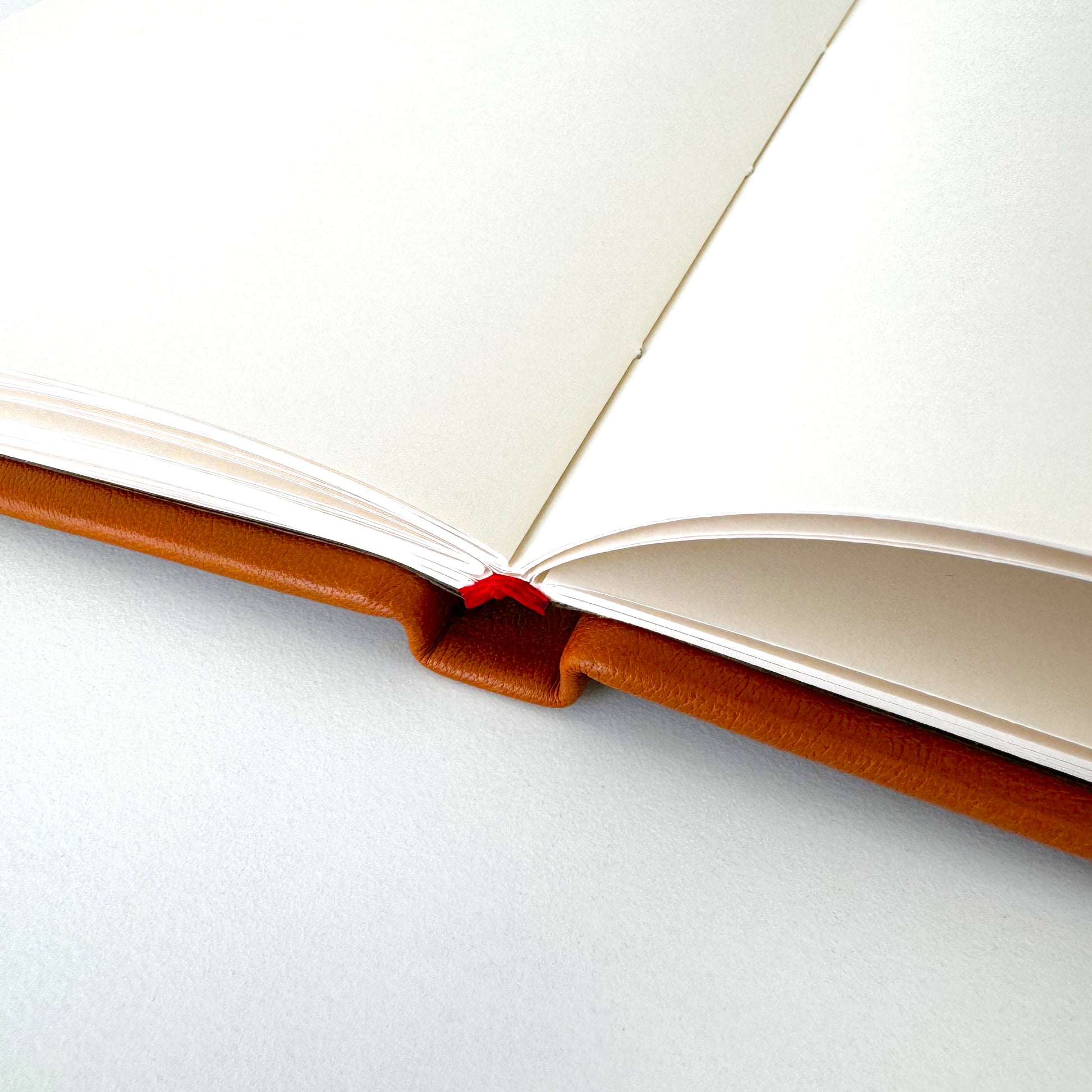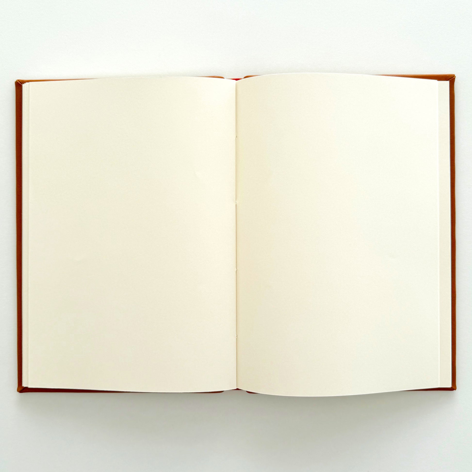 Dolma kalem uyumlu, boş iç sayfalara sahip bu defter, 180° açılabilir şekilde elde dikildi.