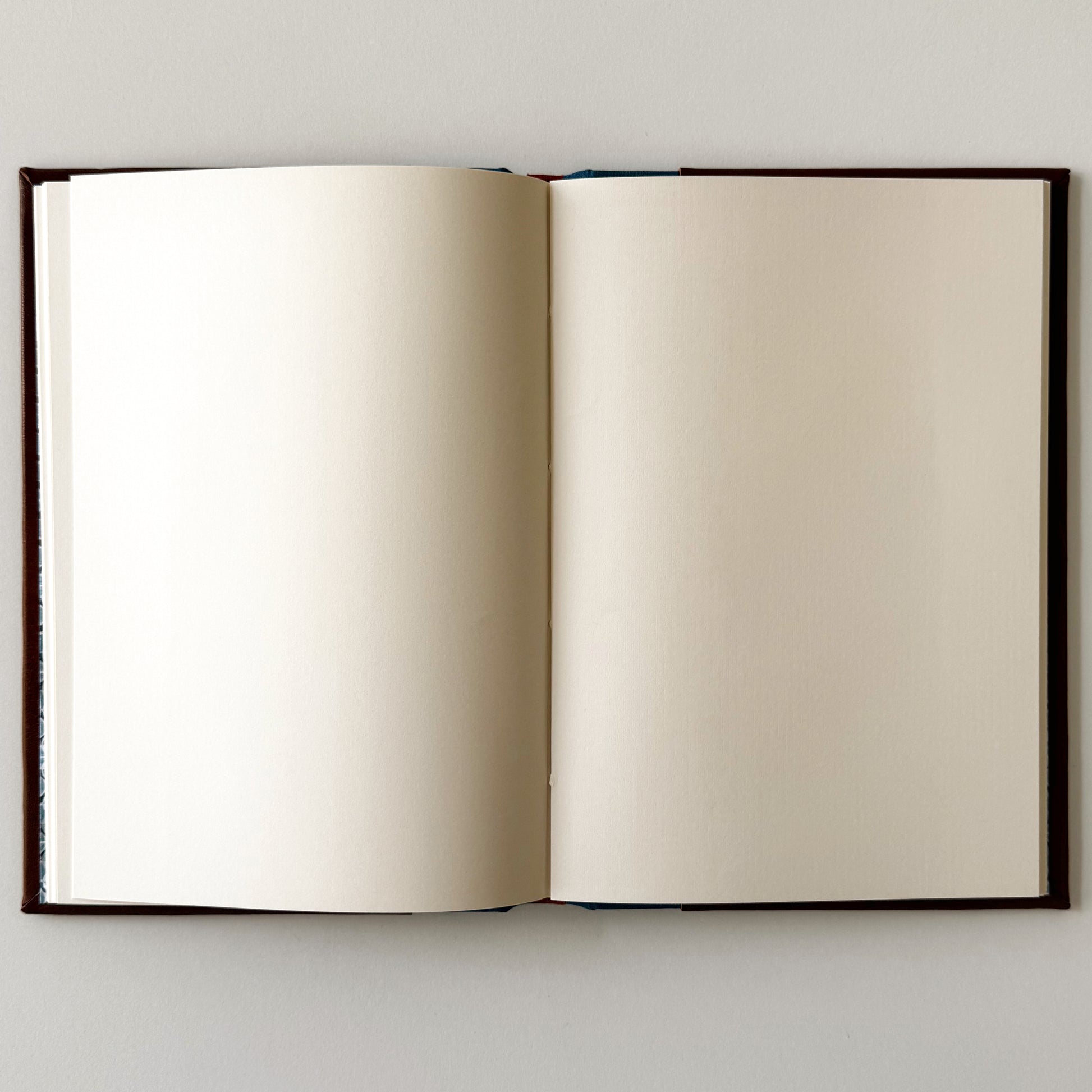 Dolma kalem uyumlu, boş iç sayfalara sahip bu defter, 180° açılabilir şekilde elde dikildi.
