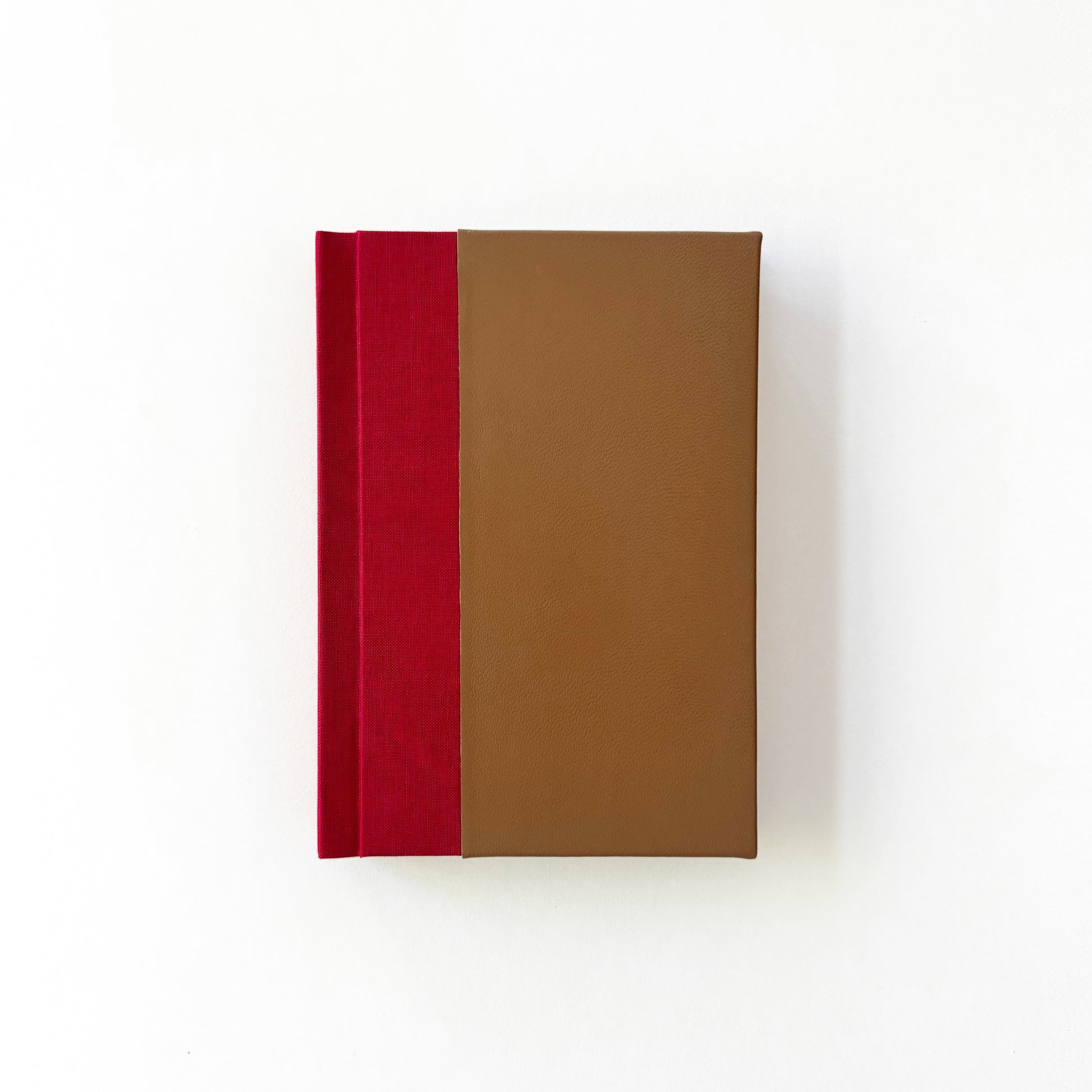 Ön kapağı açık kahverengi, mat, hakiki deri; arka kapağı mint yeşili, mat, hakiki deri ve sırtı kırmızı, keten cilt bezi ile ciltlendi.