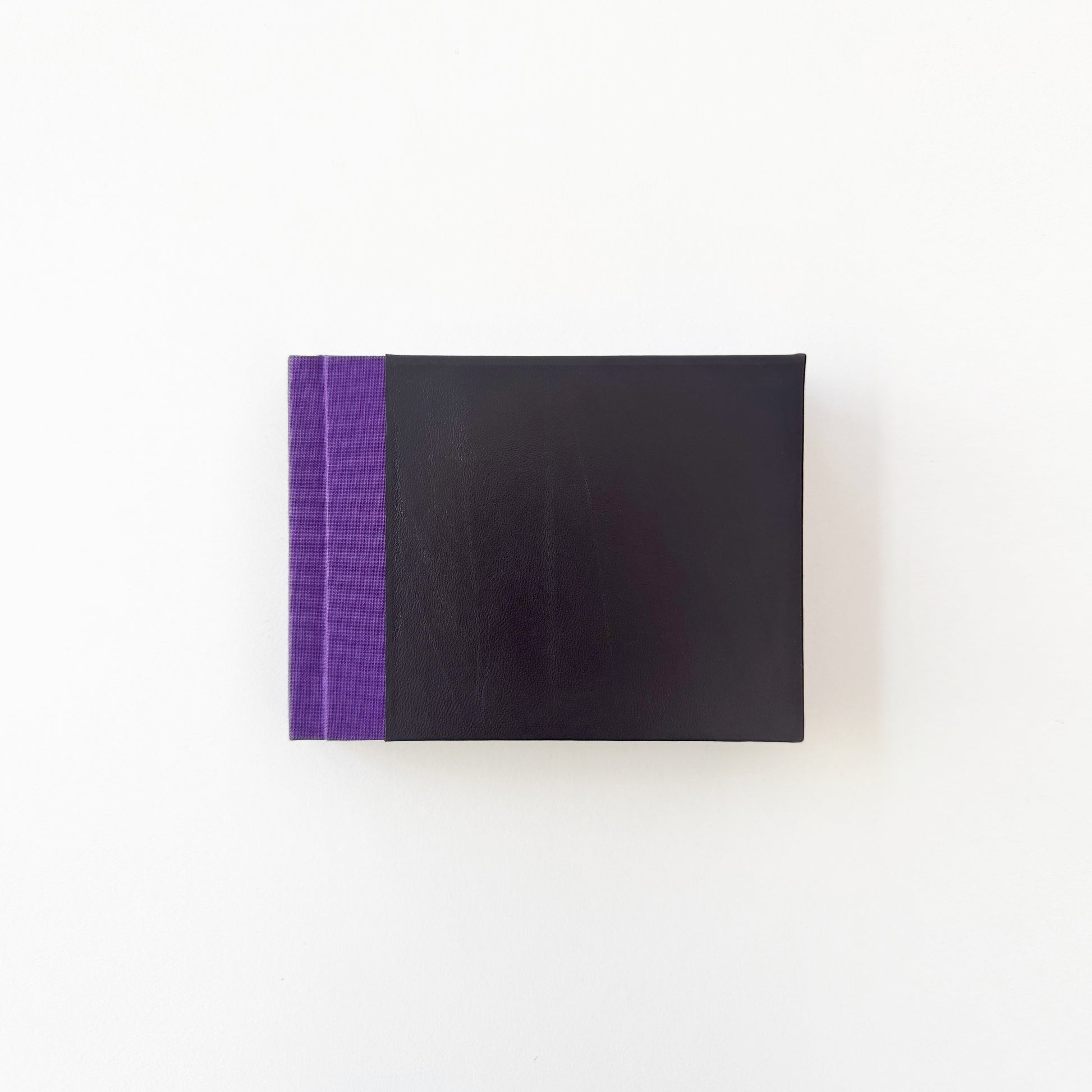 Koyu mor, parlak, hakiki deri ve mor, keten cilt bezi ile ciltlendi.