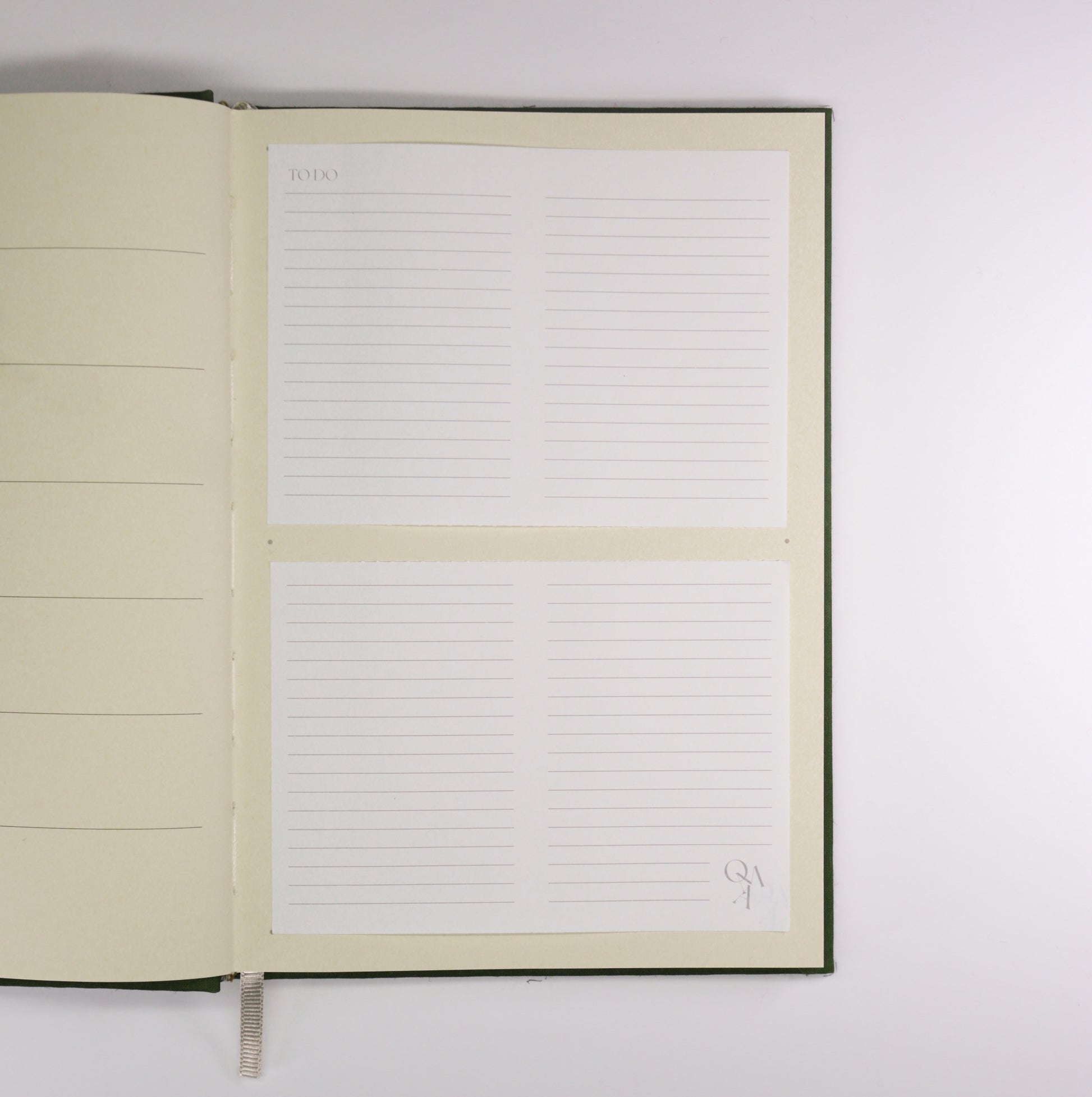 Weekly Planner içerisindeki not sayfalarına yapıştırarak kullanabileceğiniz bu ek sayfalar, çizgili ve dört bölmeli tasarımı ile listeler yapmanızı kolaylaştırır; hafta içinde tamamlayamadığınız “to do” kalemlerinizi bir sonraki haftaya zahmetsizce transfer edebilmenizi sağlar; daha temiz bir defter kullanımı için size kullan-at bir karalama alanı sunar.